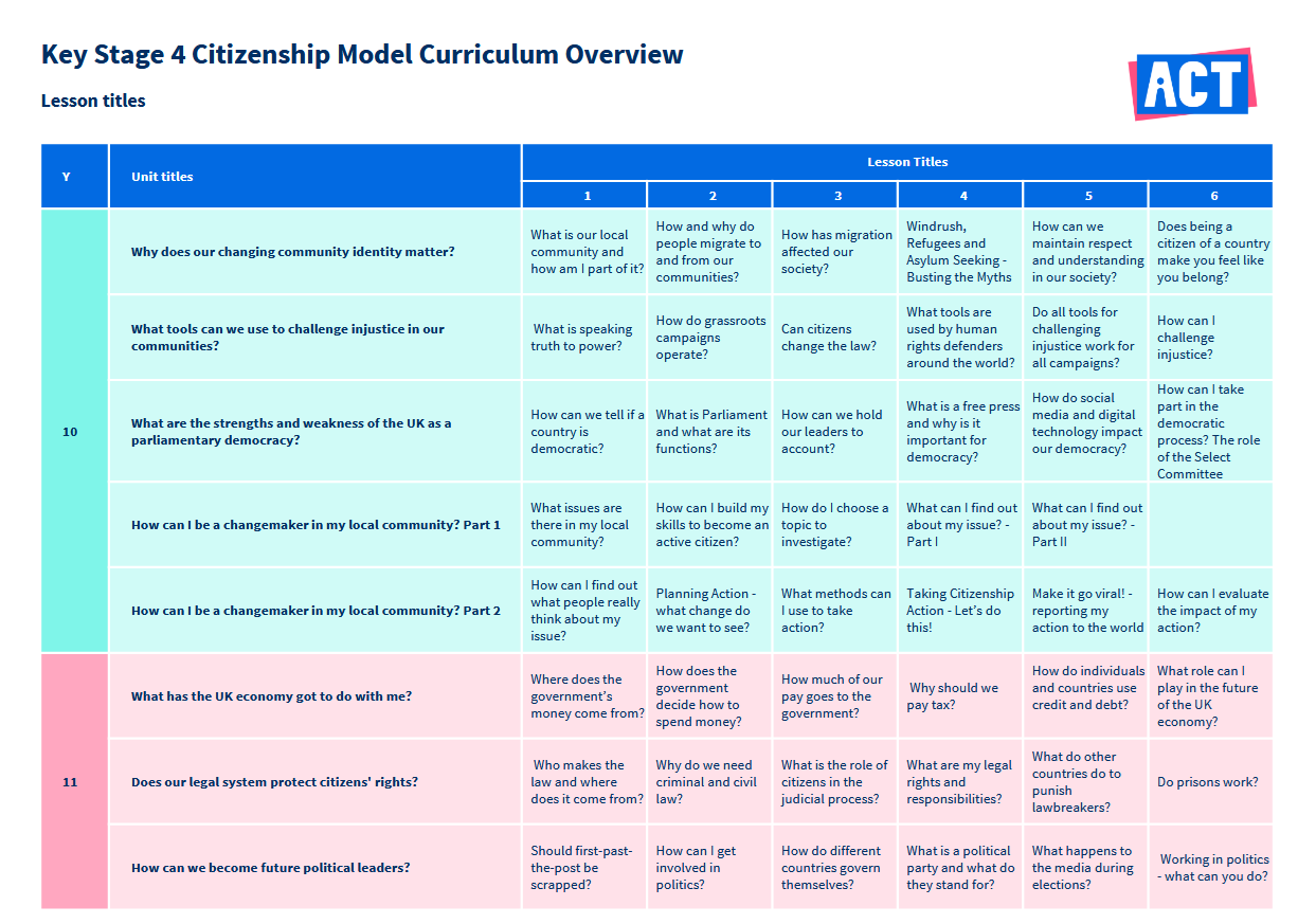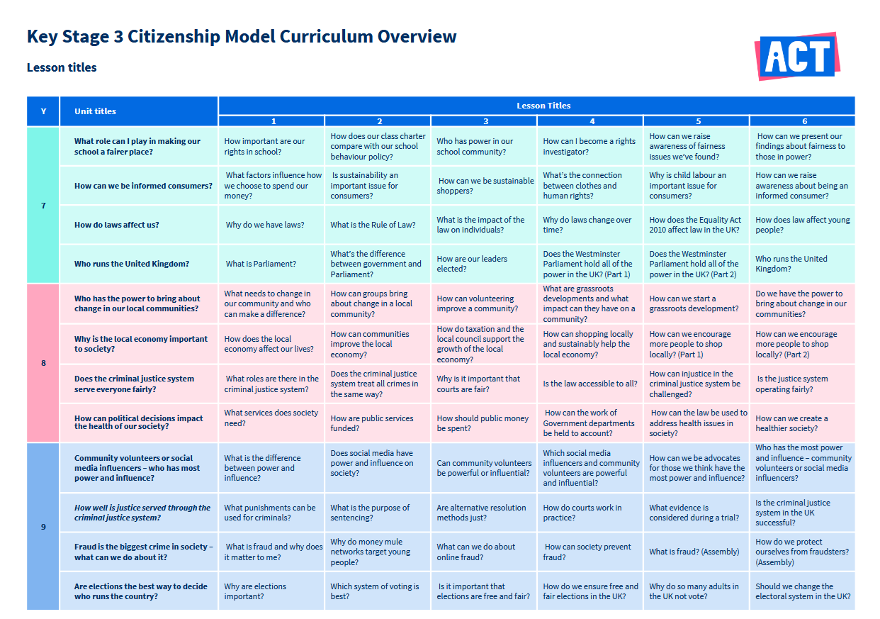 National Curriculum Citizenship teaching requirements: