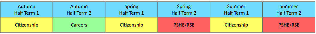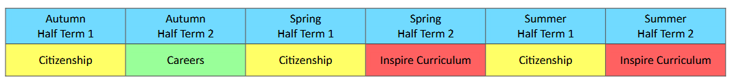 All students have timetabled personal development lessons where they are taught PSHE/ RSE, Citizenship, Careers and the Inspire Curriculum.
