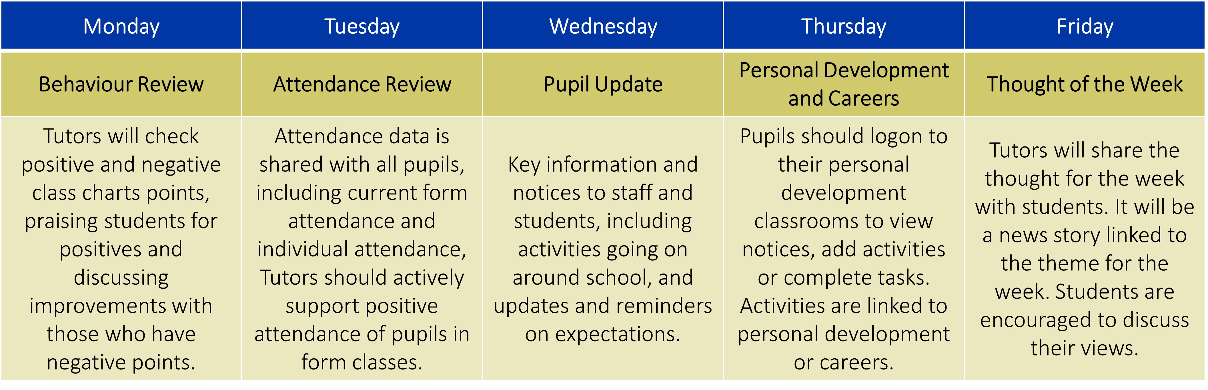 See our tutor time plan below.
