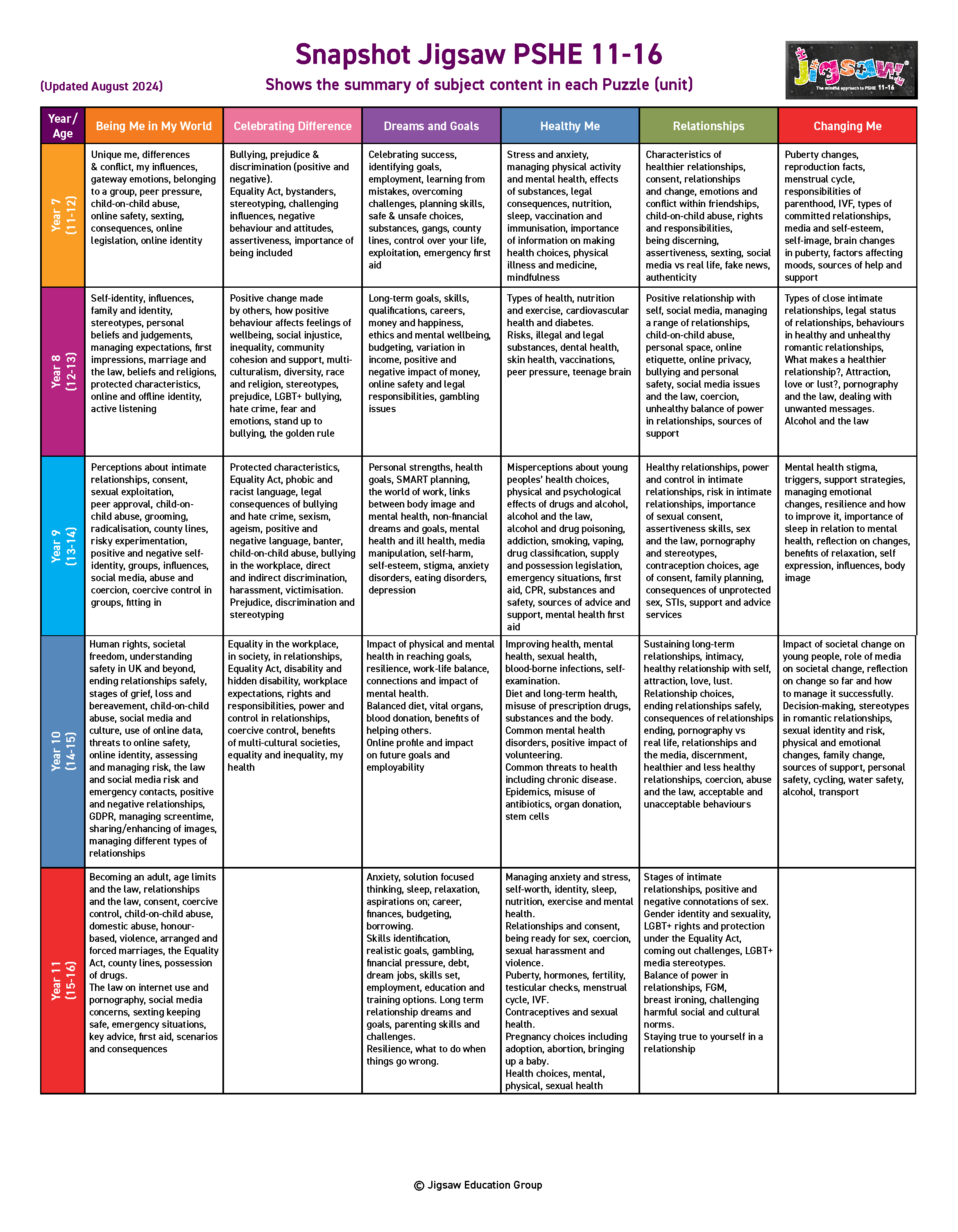 The 11-16 Mapping to DFE Statutory RSHE Outcomes document can be viewed here: 11-16-mapping-to-dfe-statutory-rshe-outcomes